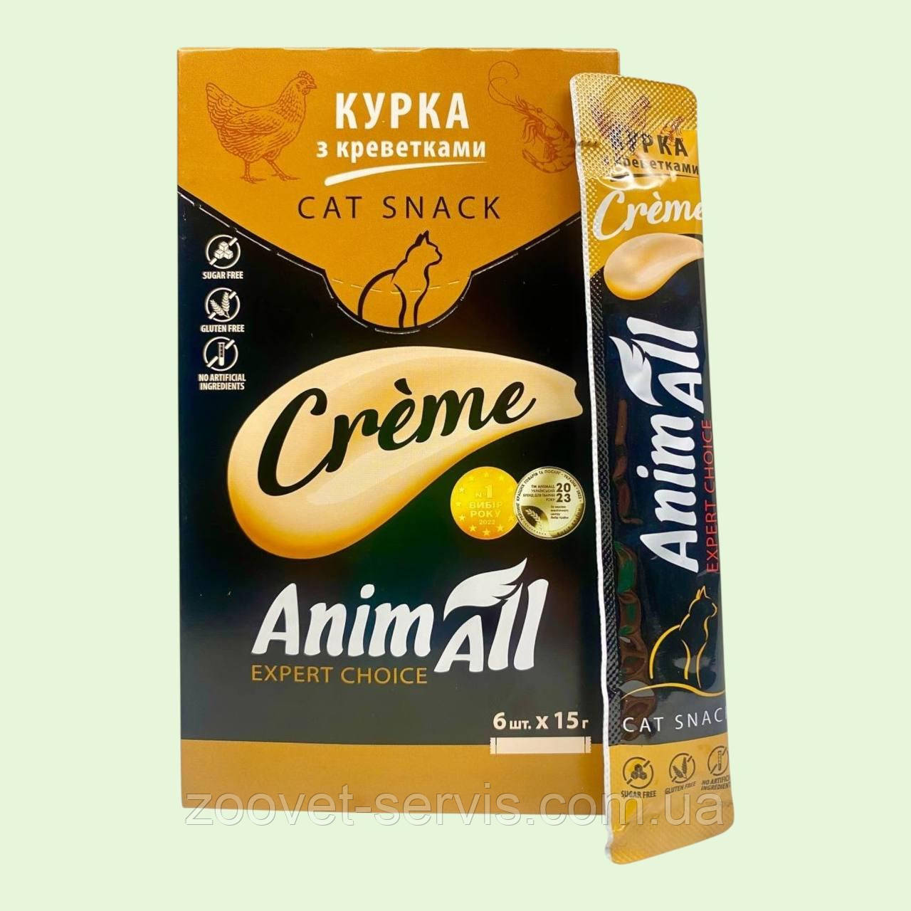 AnimAll Cat Snack Creme зі смаком курки та креветок рідкі ласощі для котів і кошенят (6 стіків х 15 г)